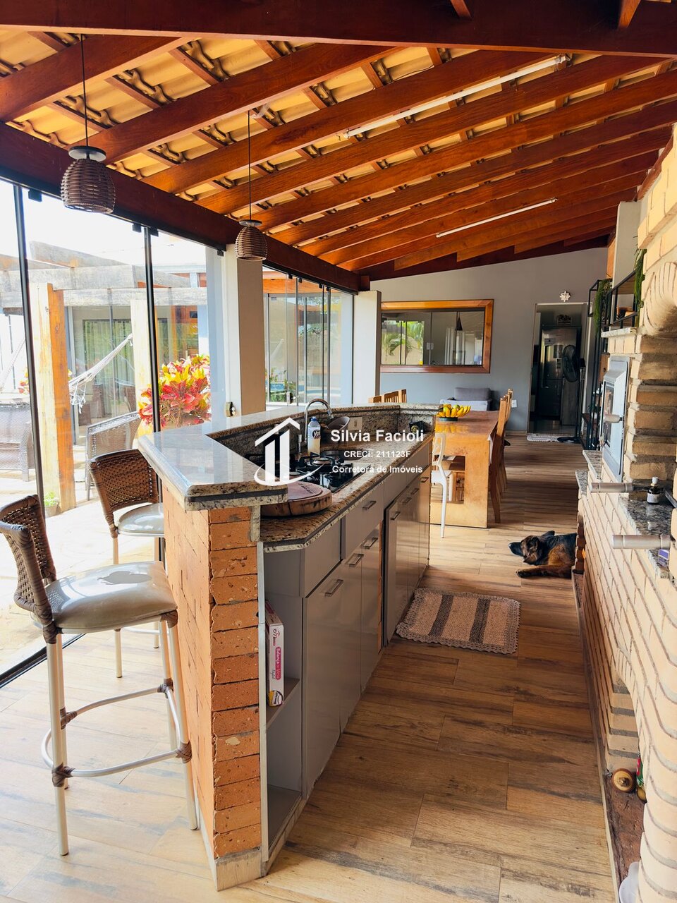 - Área Gourmet (com fogão a gás e fogão a lenha, água quente, churrasqueira e forno conjugado)